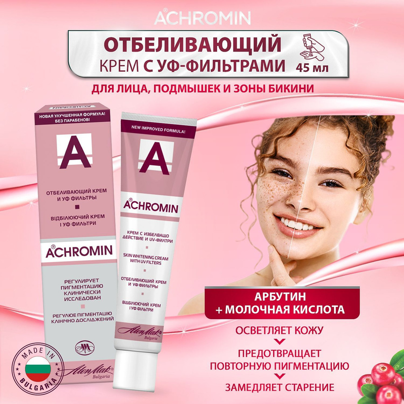 Vyzkoušela jsem spoustu léků na pihy, ale nic moc nepomohlo. A i když se stávající pihy zesvětlily, znovu a znovu se objevovaly nové a světlé. Na bělící masce Achromin se mi líbí, že má také tu vlastnost, že chrání pokožku před vznikem nových – je to zázrak. Nyní ji aktivně používám -. Přečtěte si recenzi Vyzkoušela jsem spoustu léků na pihy, ale nic moc nepomohlo. A i když se stávající pihy zesvětlily, znovu a znovu se objevovaly nové a světlé. Na bělící masce Achromin se mi líbí, že má také tu vlastnost, že chrání pokožku před vznikem nových – je to zázrak. Nyní ho aktivně používám – sluníčko je čím dál tím jasnější, ale baví mě trávit čas venku, na čerstvém vzduchu – vím, že přípravek funguje. Maska je příjemná na pokožku, aktivně se vstřebává – i když zbyde přebytek, lze ji odstranit bez oplachování. Ale u mě se většinou vše vstřebá až do konce. Dosáhne se efektu jemného bělení – se současným zvlhčením. Super!