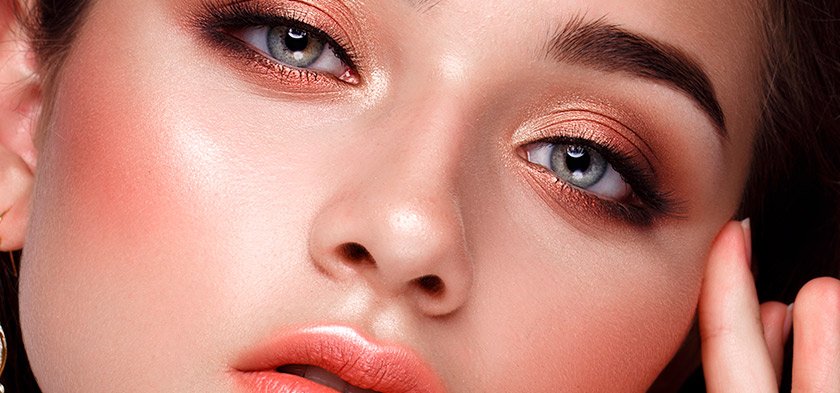 Nahý make-up pro blondýnky může být na jedné straně velmi jemný jako obvykle, na druhé straně – bohatý: přidáme jas vytvořením základny. Důkladně promíchejte sérum Alliance Perfect Nude Hyaluronic Serum, abyste vytvořili rovnoměrný, zářivý tón pleti, a poté na jablka na tvářích naneste tvářenku Paradise broskvový.