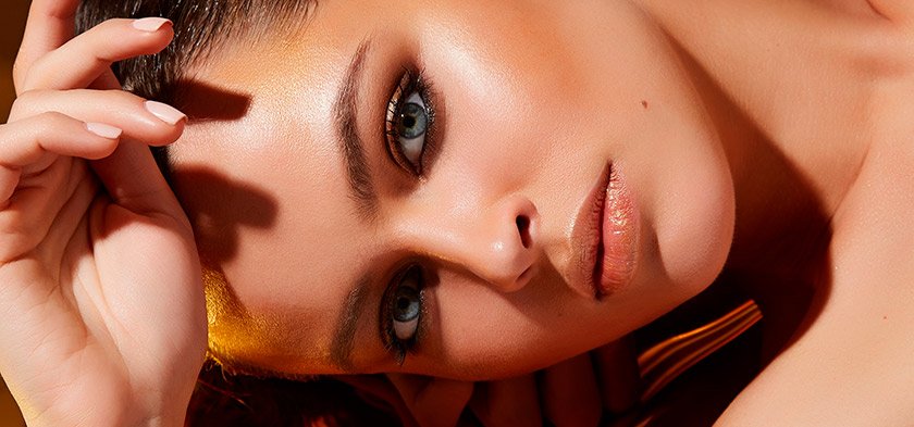 Nude makeup pro tmavé tóny pleti je založen na třech barvách: zlaté, hnědé a bronzové. Na pohyblivé oční víčko namíchejte monostín Color Queen v odstínu č. 17. Produkt má matný finiš a velmi příjemnou jemnou texturu – aplikace těchto stínů je samostatným potěšením.