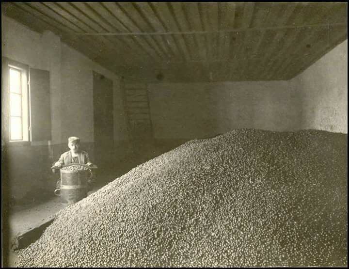 V první místnosti se olivy umyjí, oloupou, rozemelou na paštiku a poté se lisuje olej.
