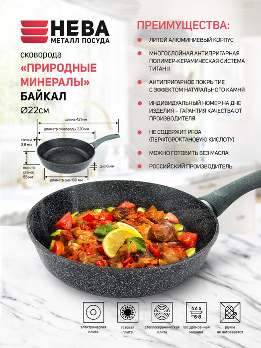 Litá pánev s nepřilnavým povrchem „Natural Minerals“ řada „Baikal“, 22 cm